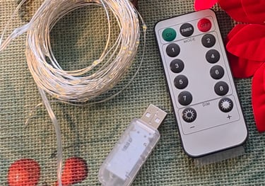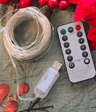 Glue the included fairy-lights to the back of the wallhanging. Simply plug into any USB port, then use the included remote to control brightness and choose from multiple twinkle, sparkle, or steady-glow modes.